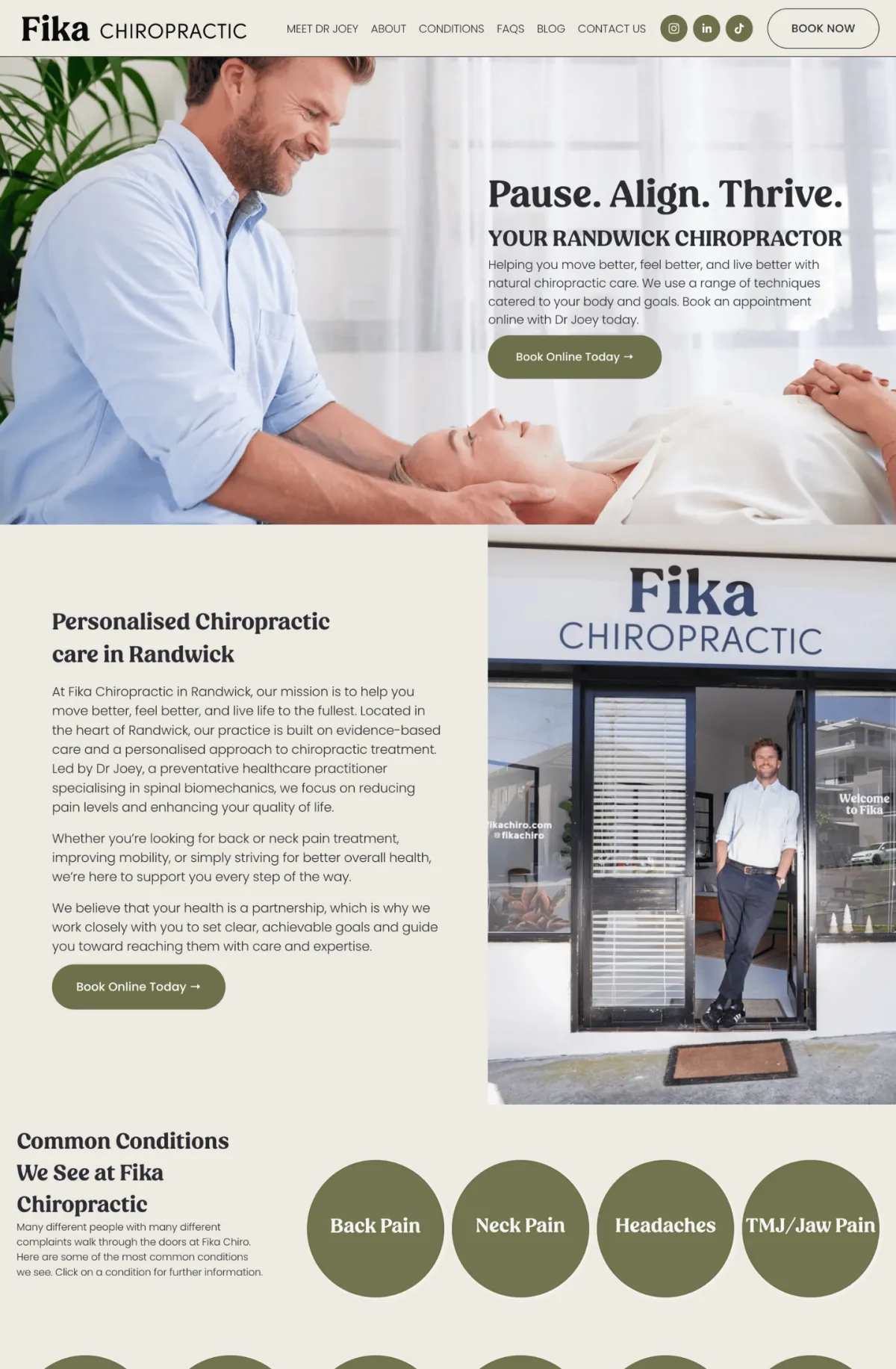 Unlike most website companies and digital marketing agencies who do not understand chiropractic, our business is run by an active chiropractor, Dr Jake Currie. Our systems are all tested in the real world with real patients in Jake's practice. When you speak with our team, you will speak with someone who knows exactly what it is like to run a chiropractic practice day-to-day.
